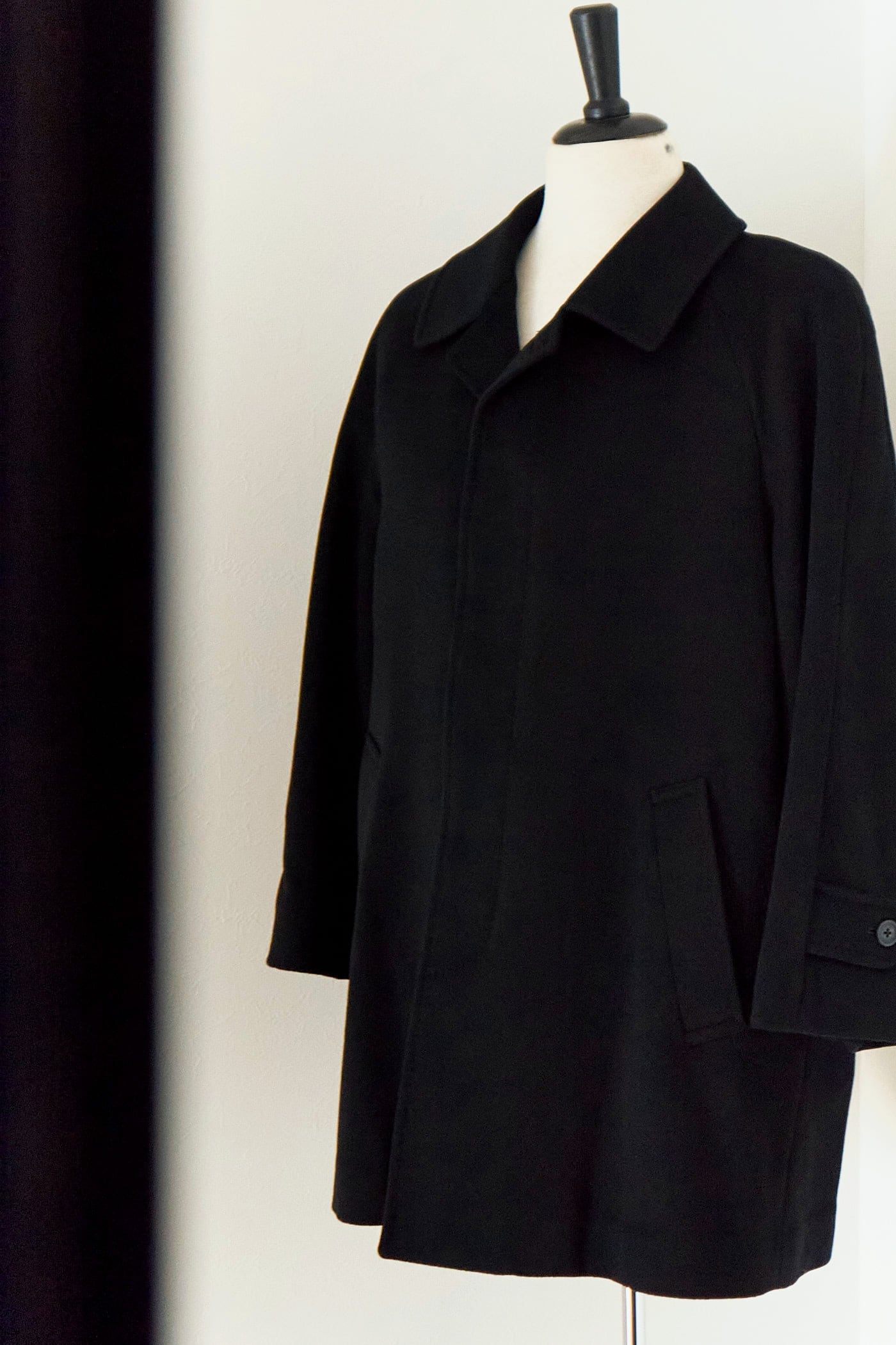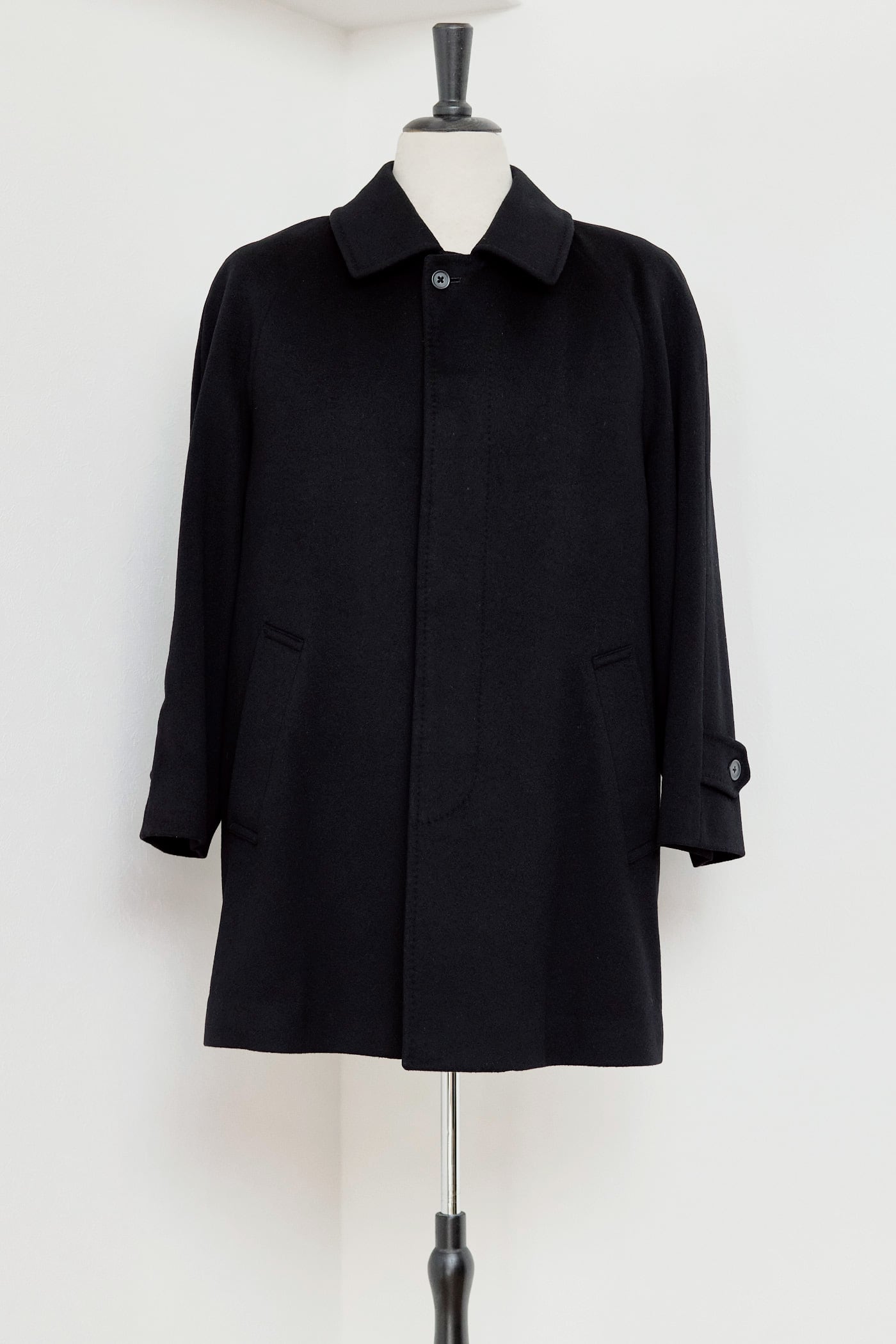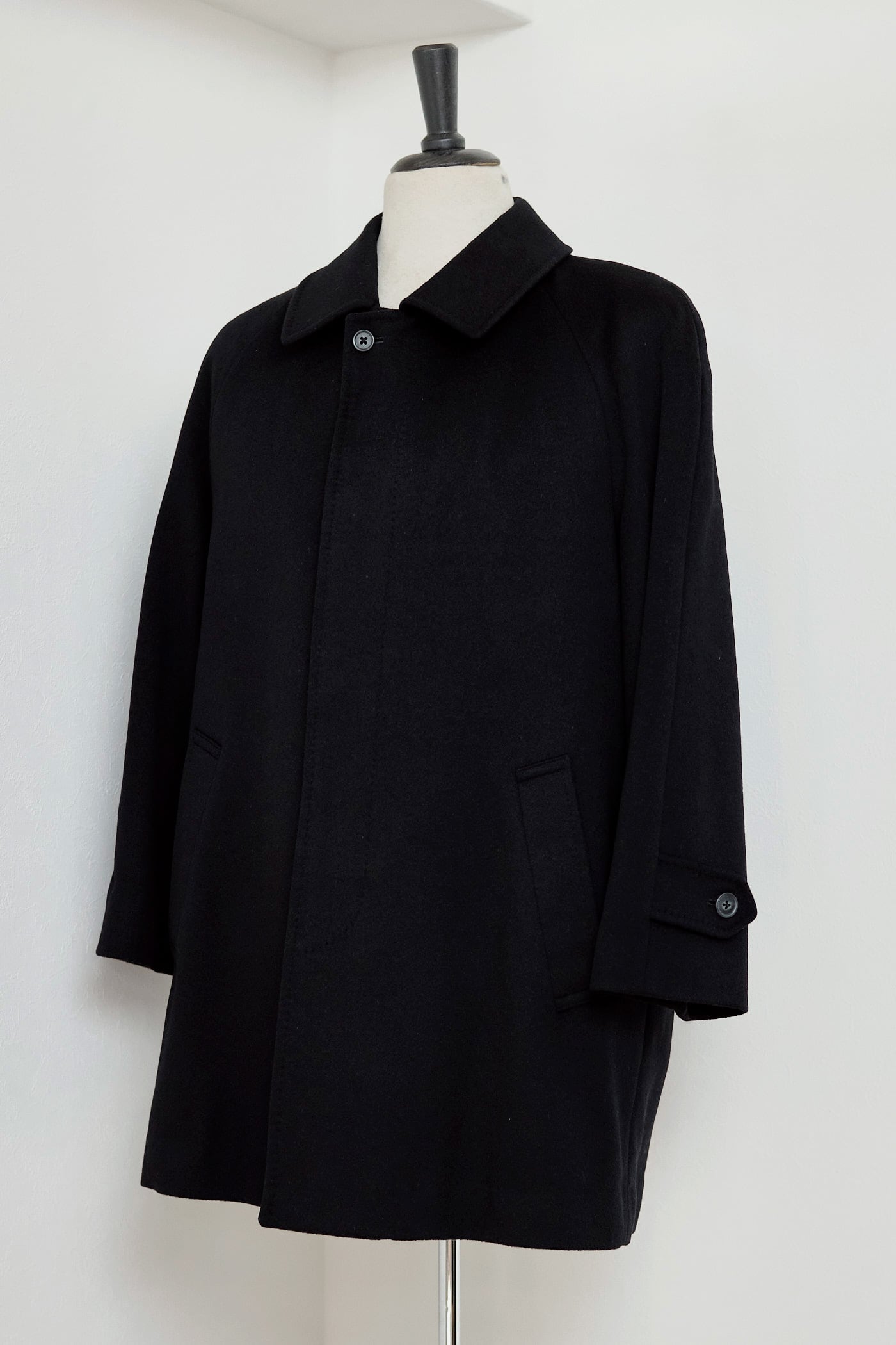 カシミア100%のラグランショートコート。
