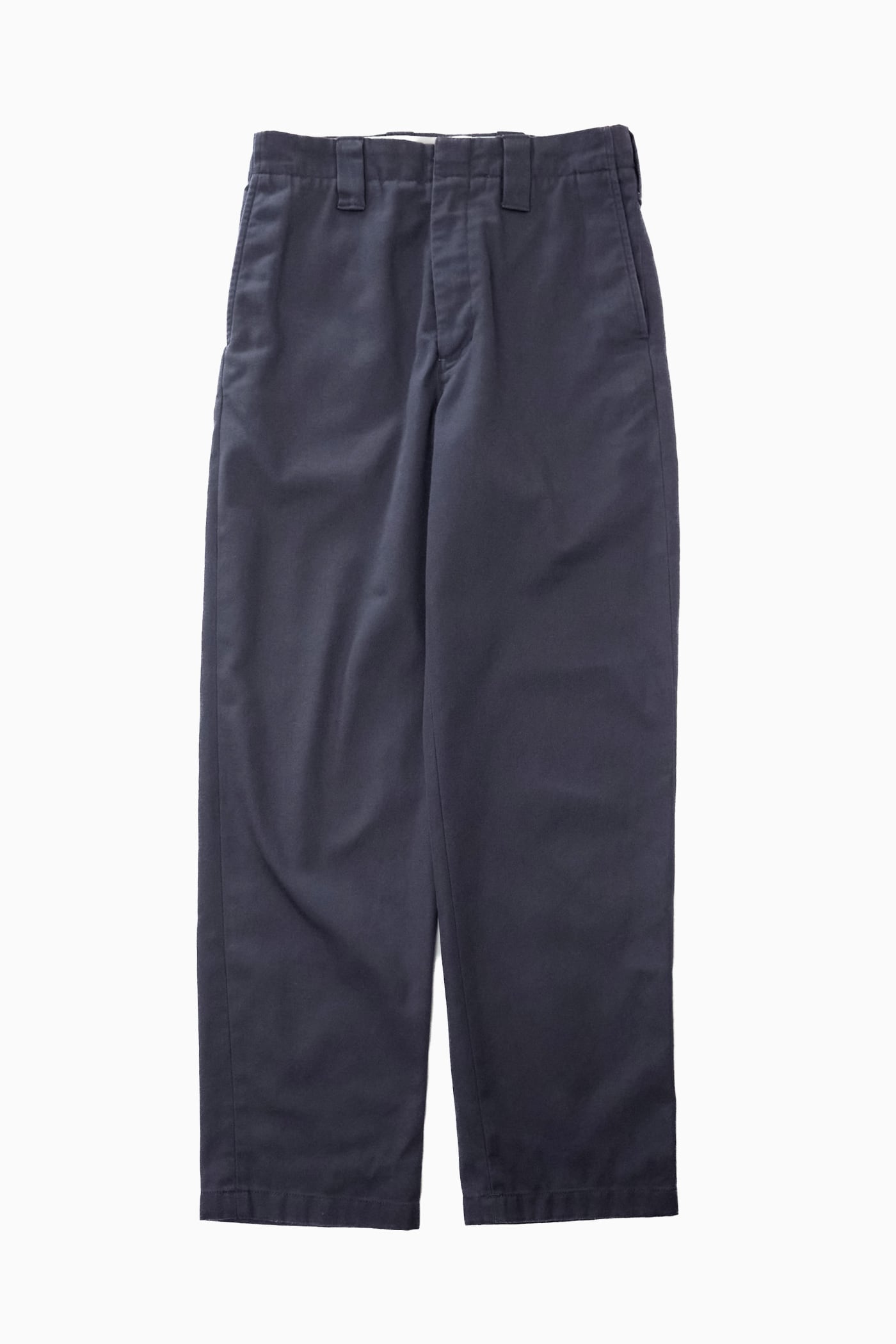 コットンとポリエステル混紡のツイル生地を使用した、ストレートシルエットのトラウザーズ。