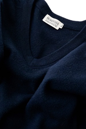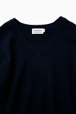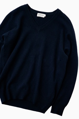 CASHMERE BLEND NAVY V-NECK KNIT