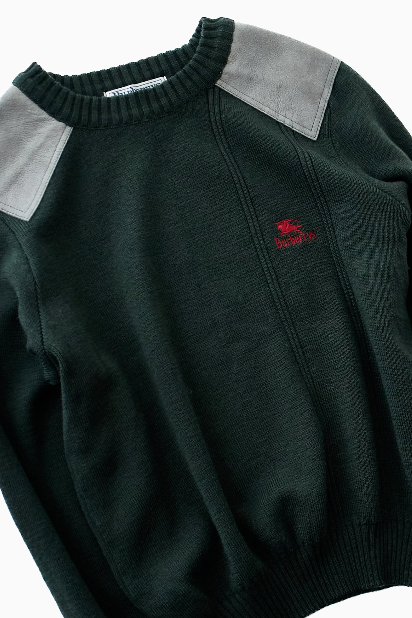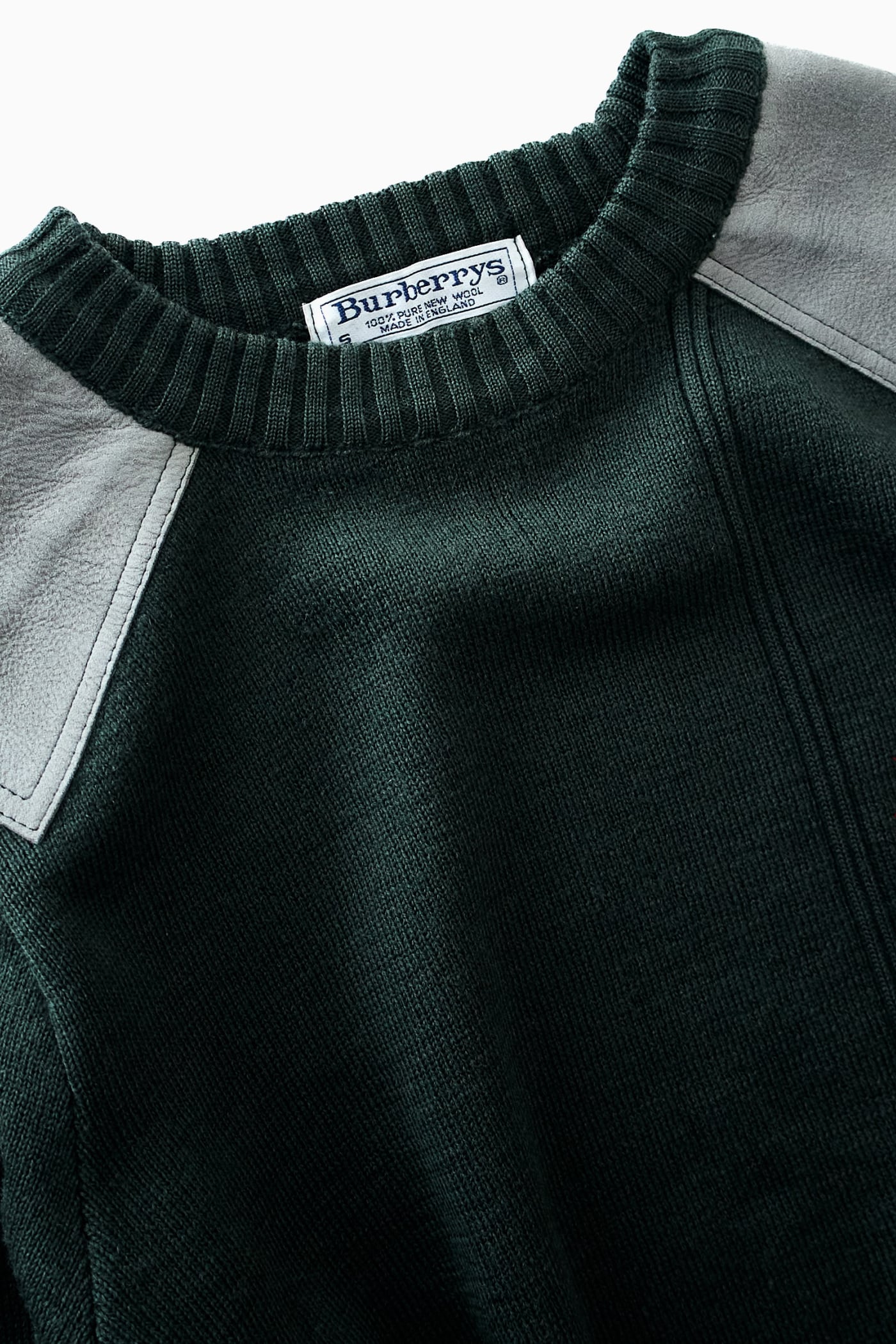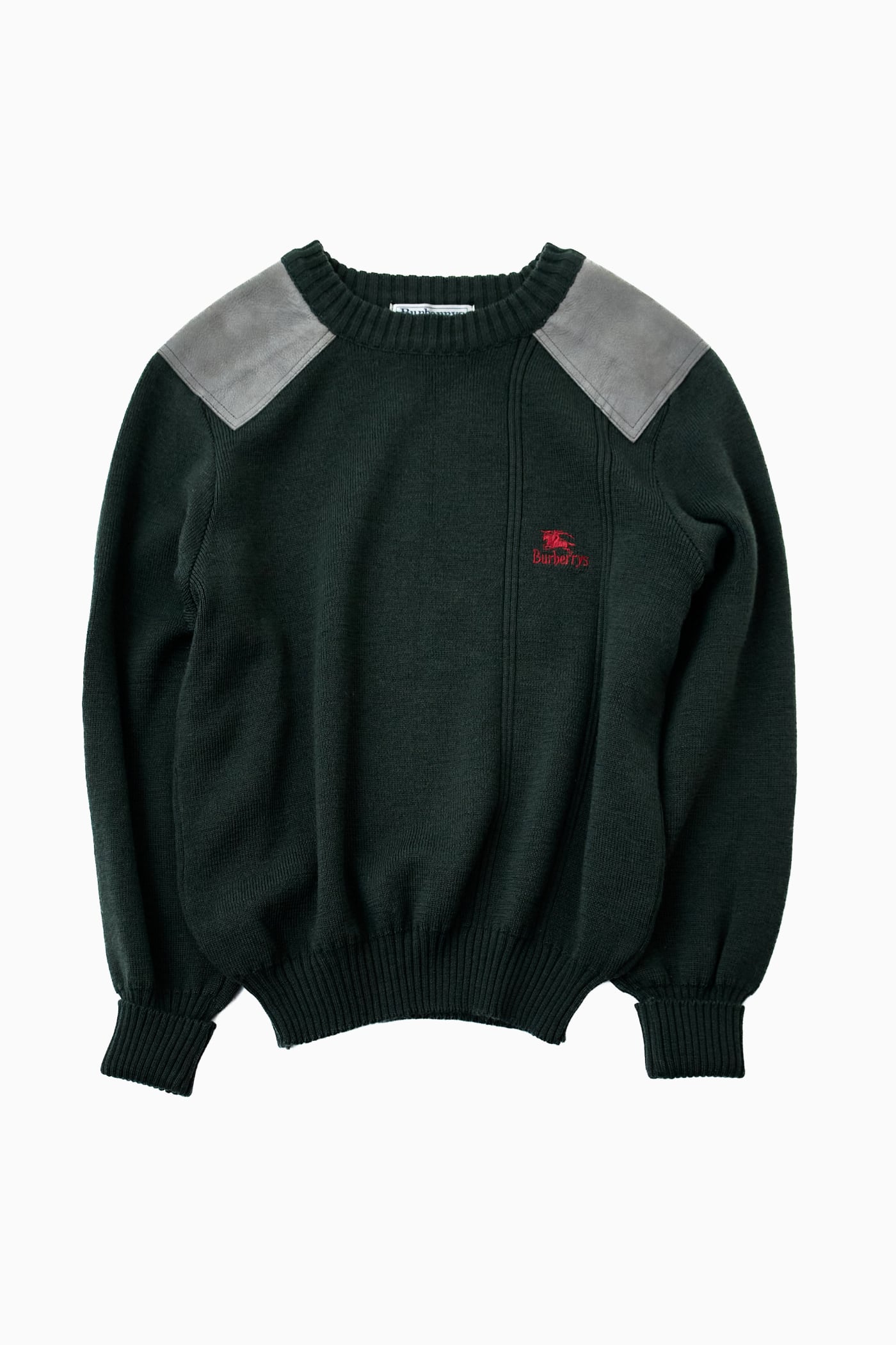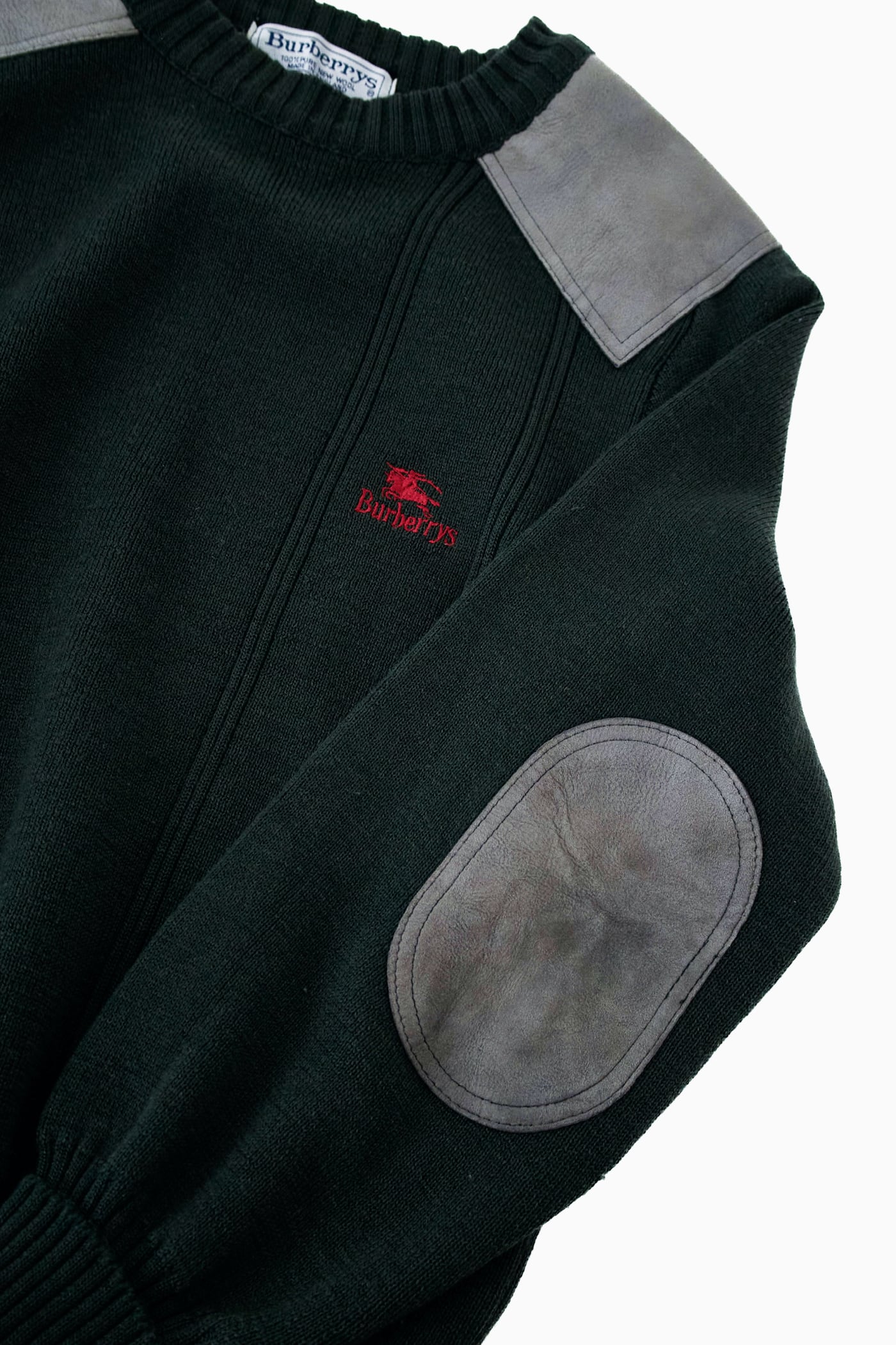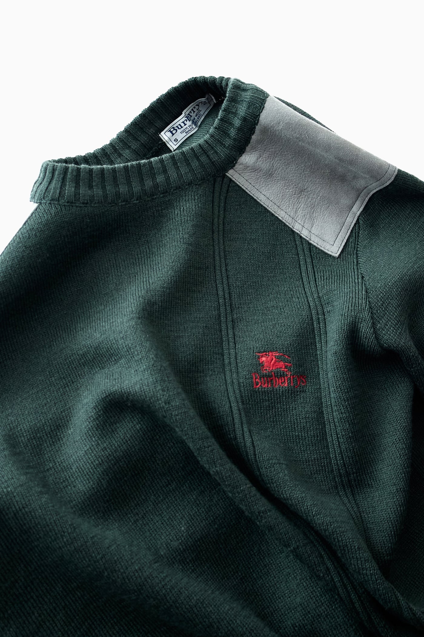 【英国製】90s Burberrys コマンドセーター レザーパッチ 刺繍ロゴ