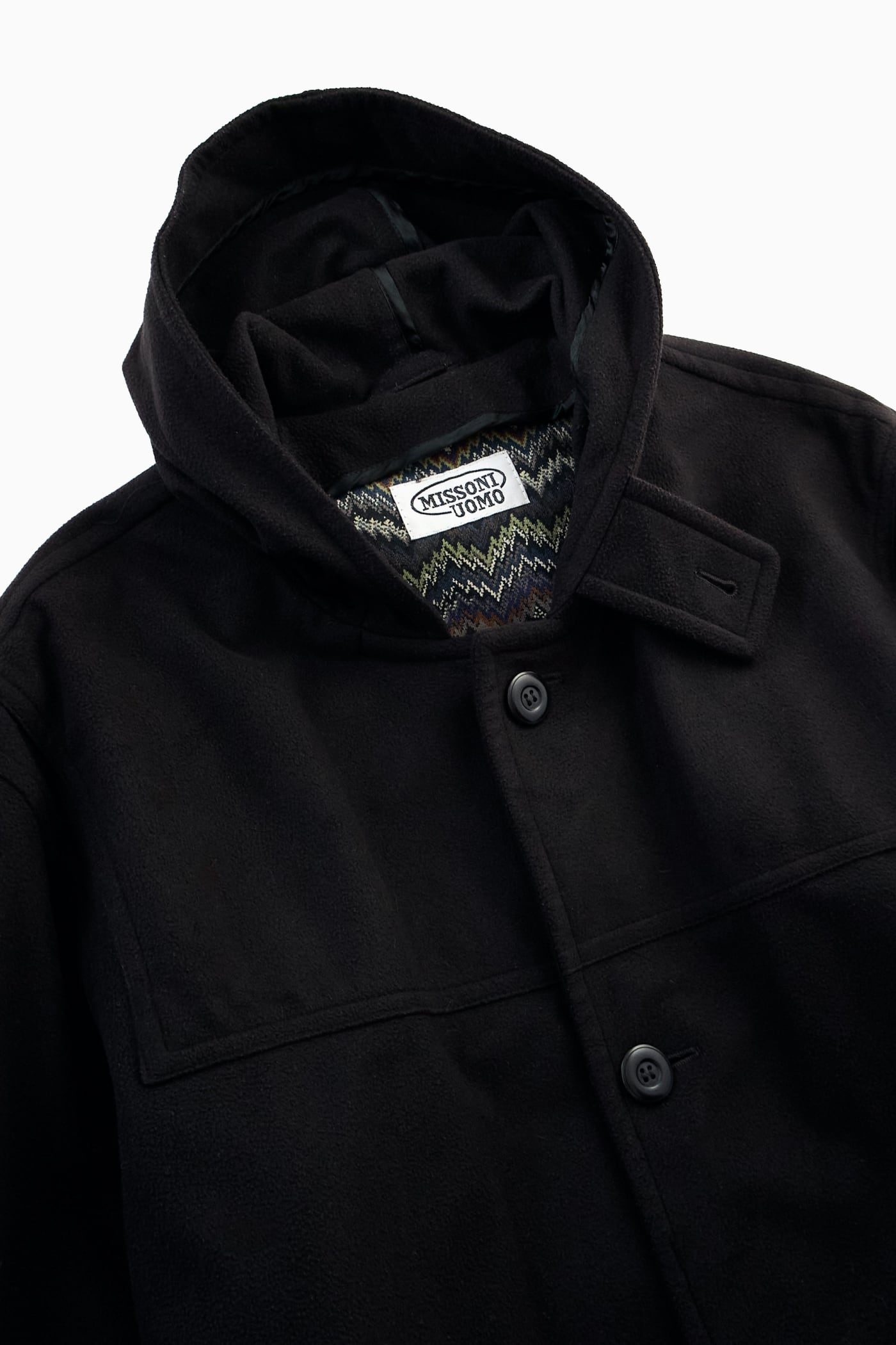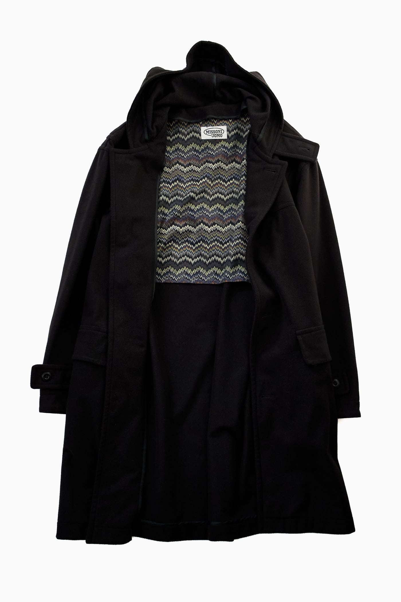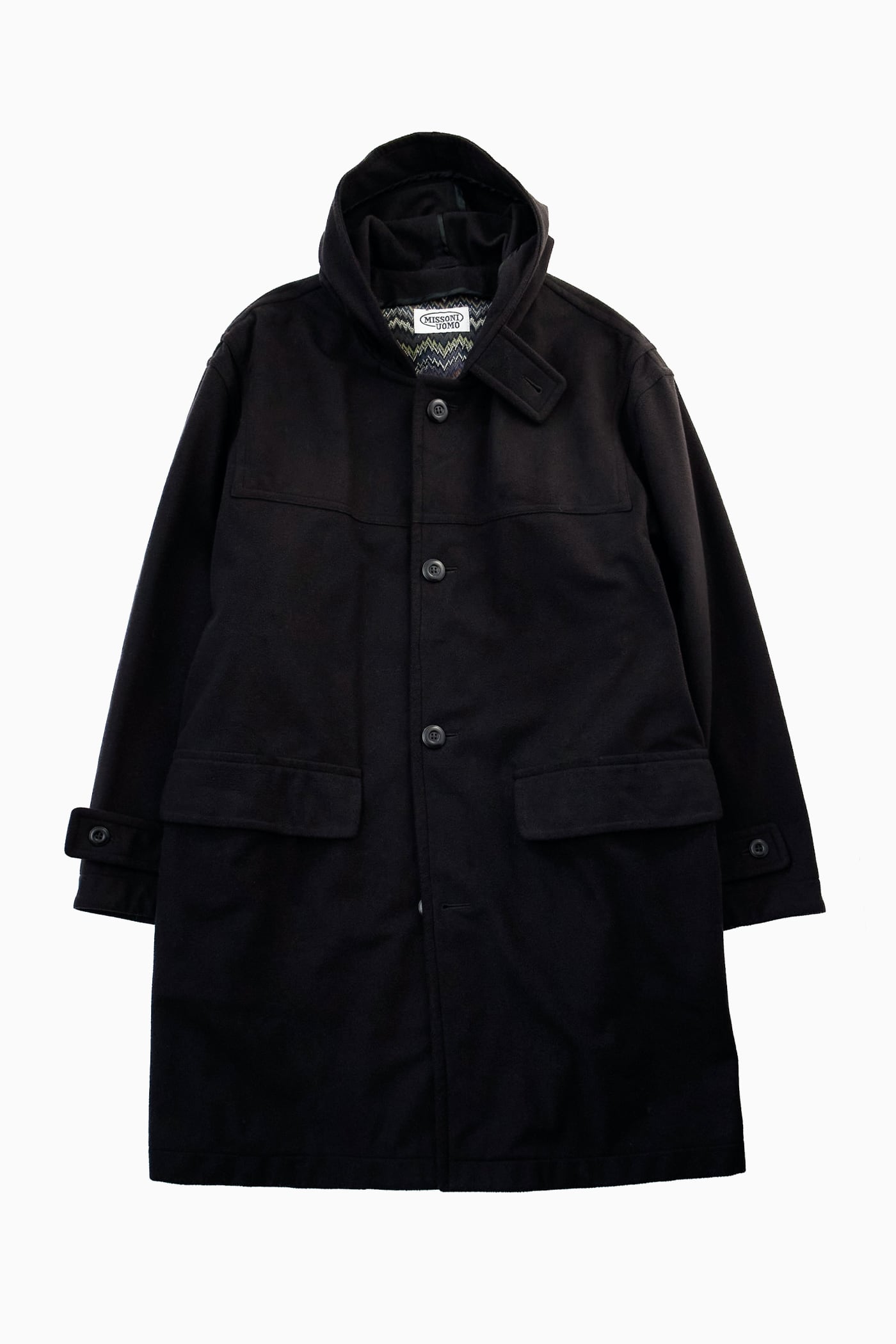 【イタリア製】MISSONI UOMO ミッソーニ BLACK HOODED COAT
