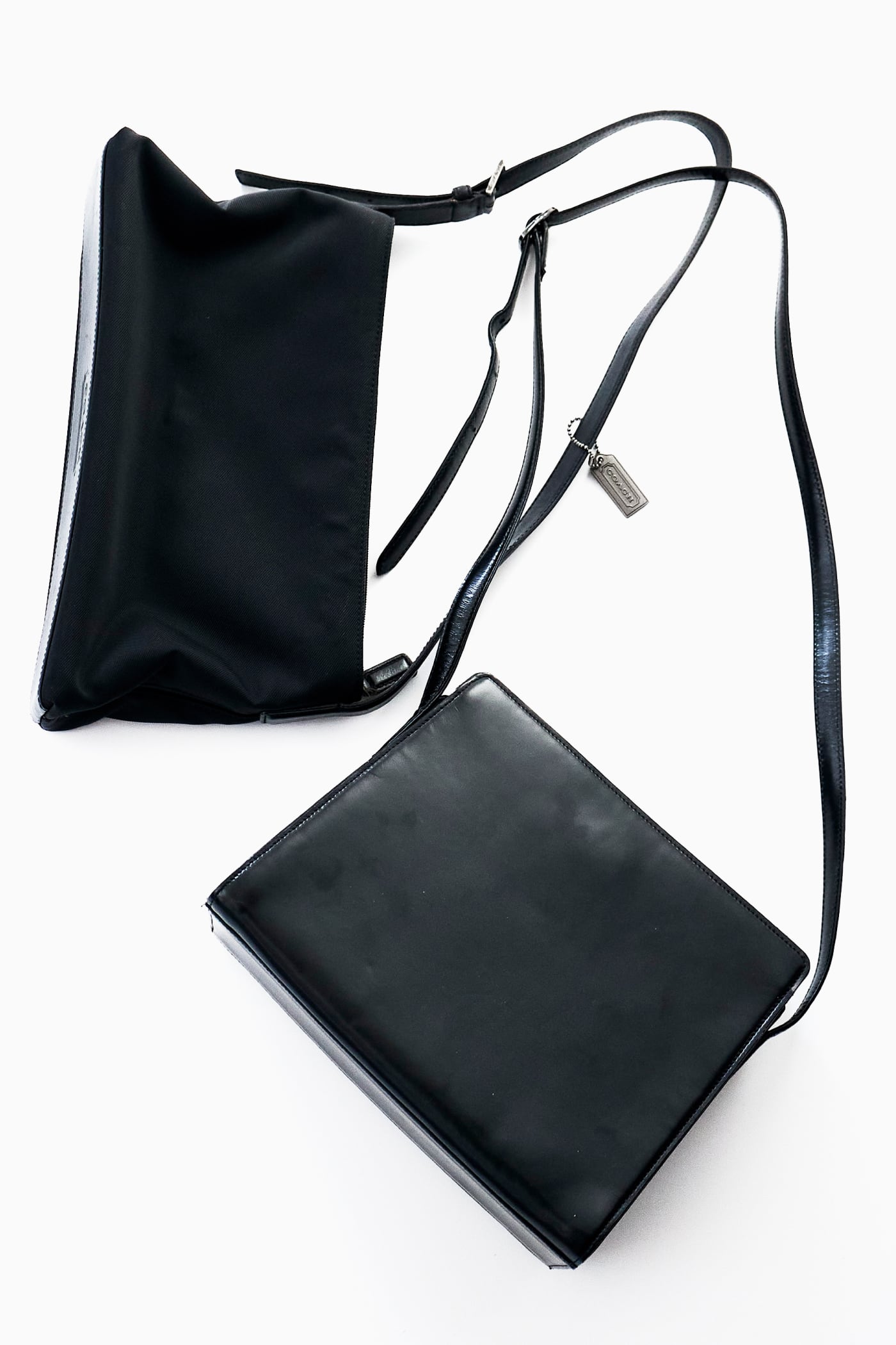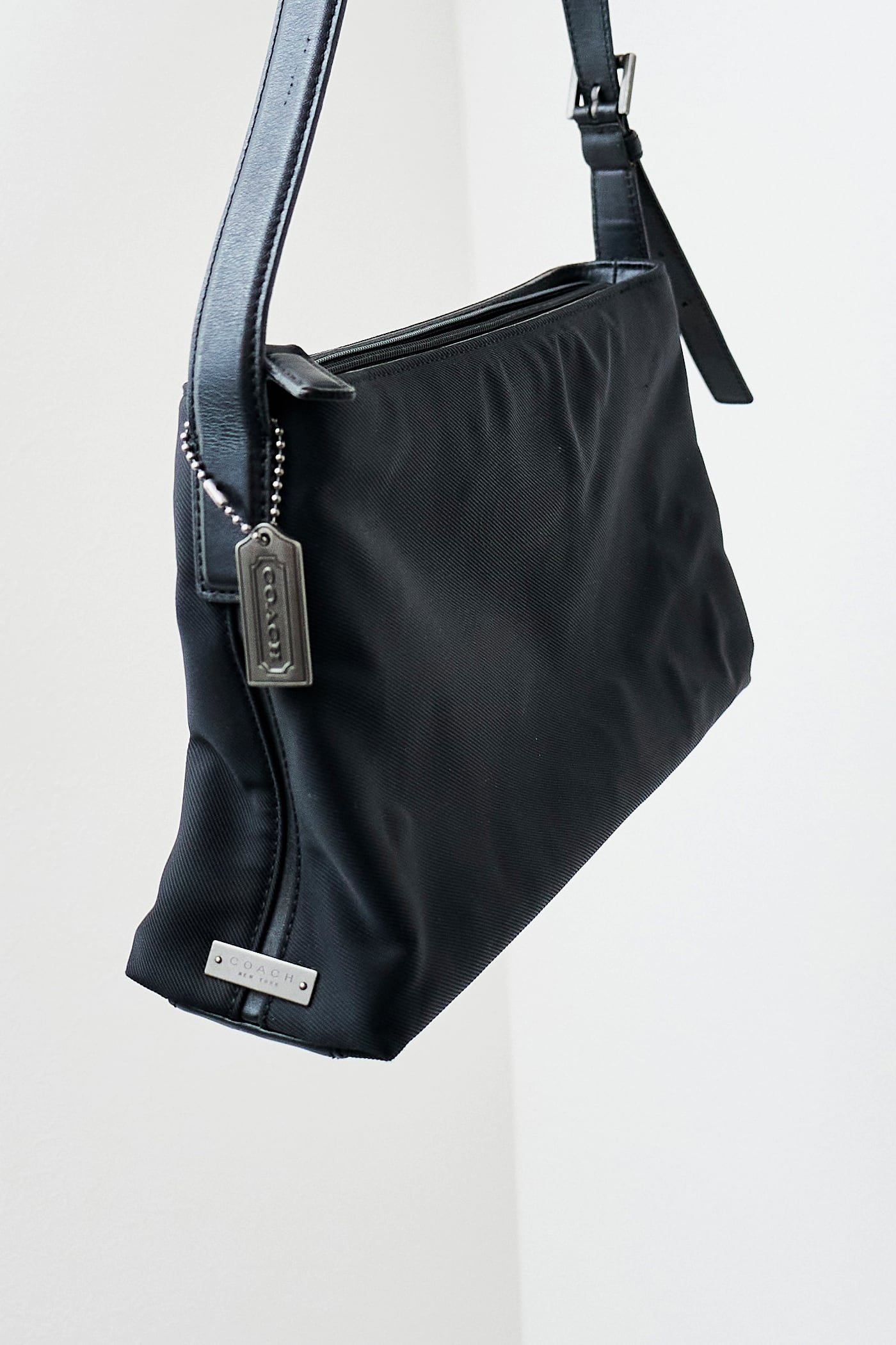 COACH BLACK NYLON X LEATHER SQUARE SHOULDER BAG