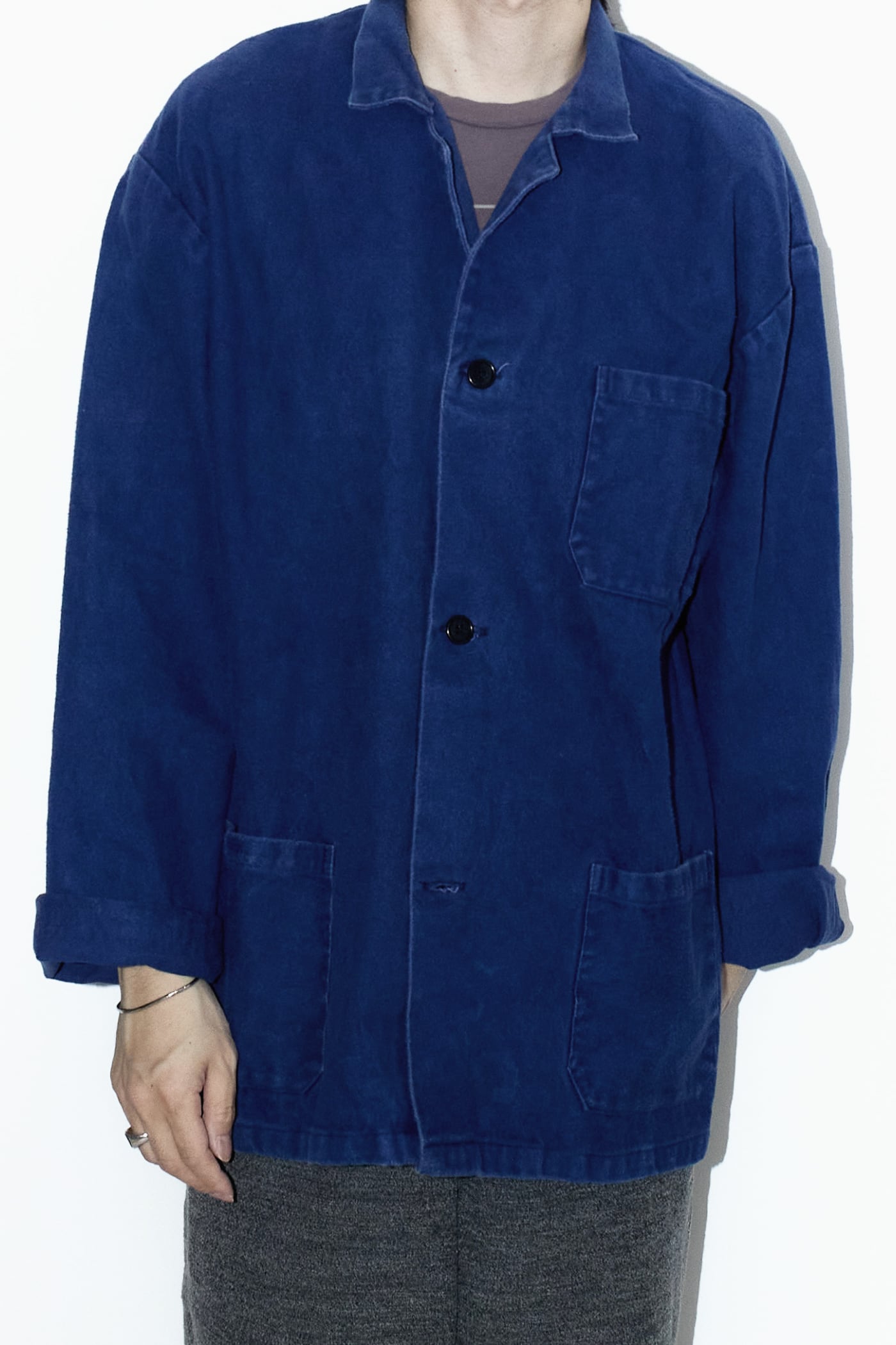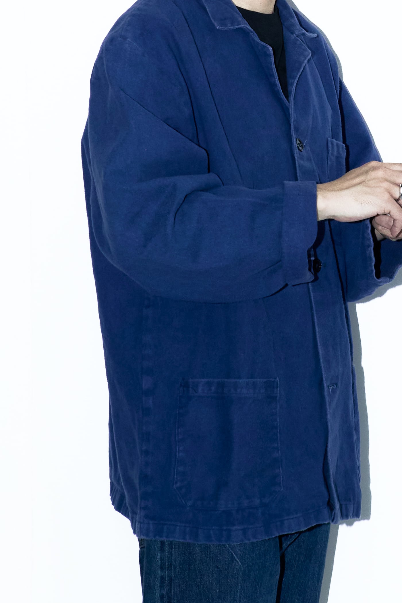 全体を包み込む深く沈んだブルーは、ユーロワーク特有のインクブルーと呼ばれる染料が、長年の着用と洗濯によってフェードして生まれたもの。