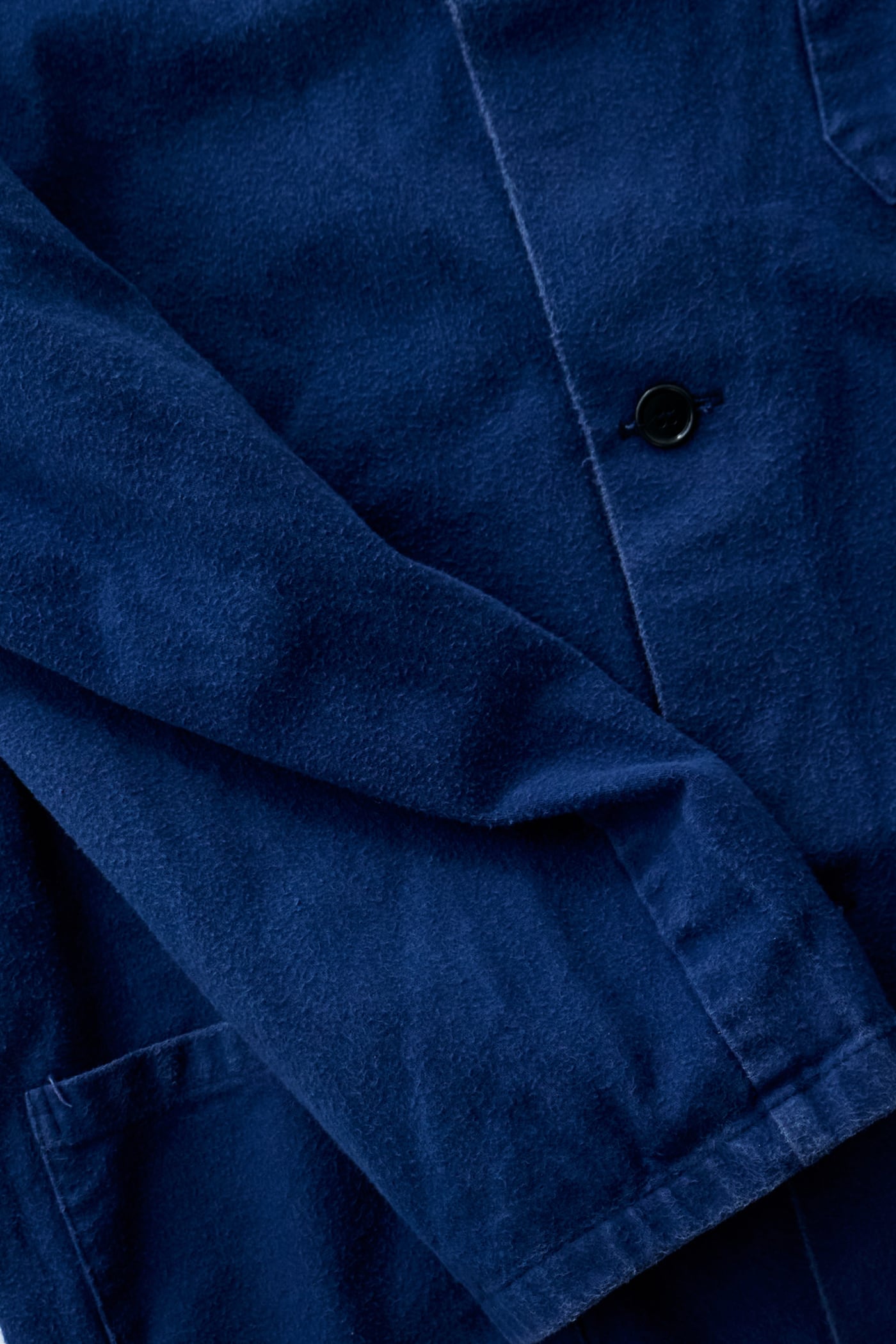 生地はしっかりと目の詰まったモールスキン調の素材ですが、着込まれることで角が取れ、まるでカーディガンのように柔らかく体に馴染む心地よい生地感へと育っています。