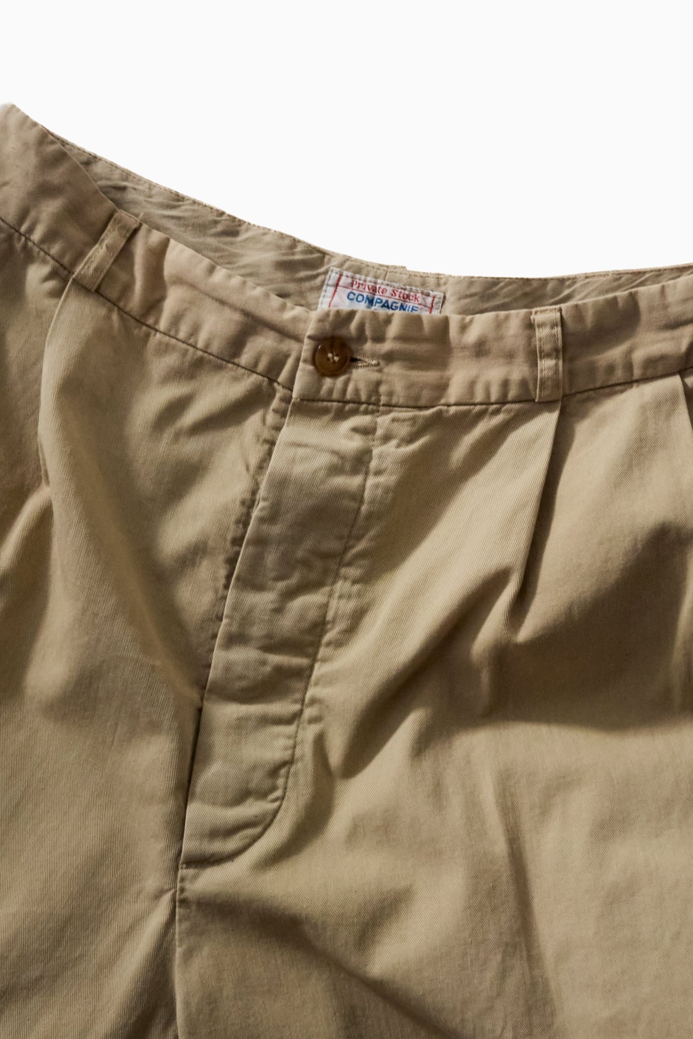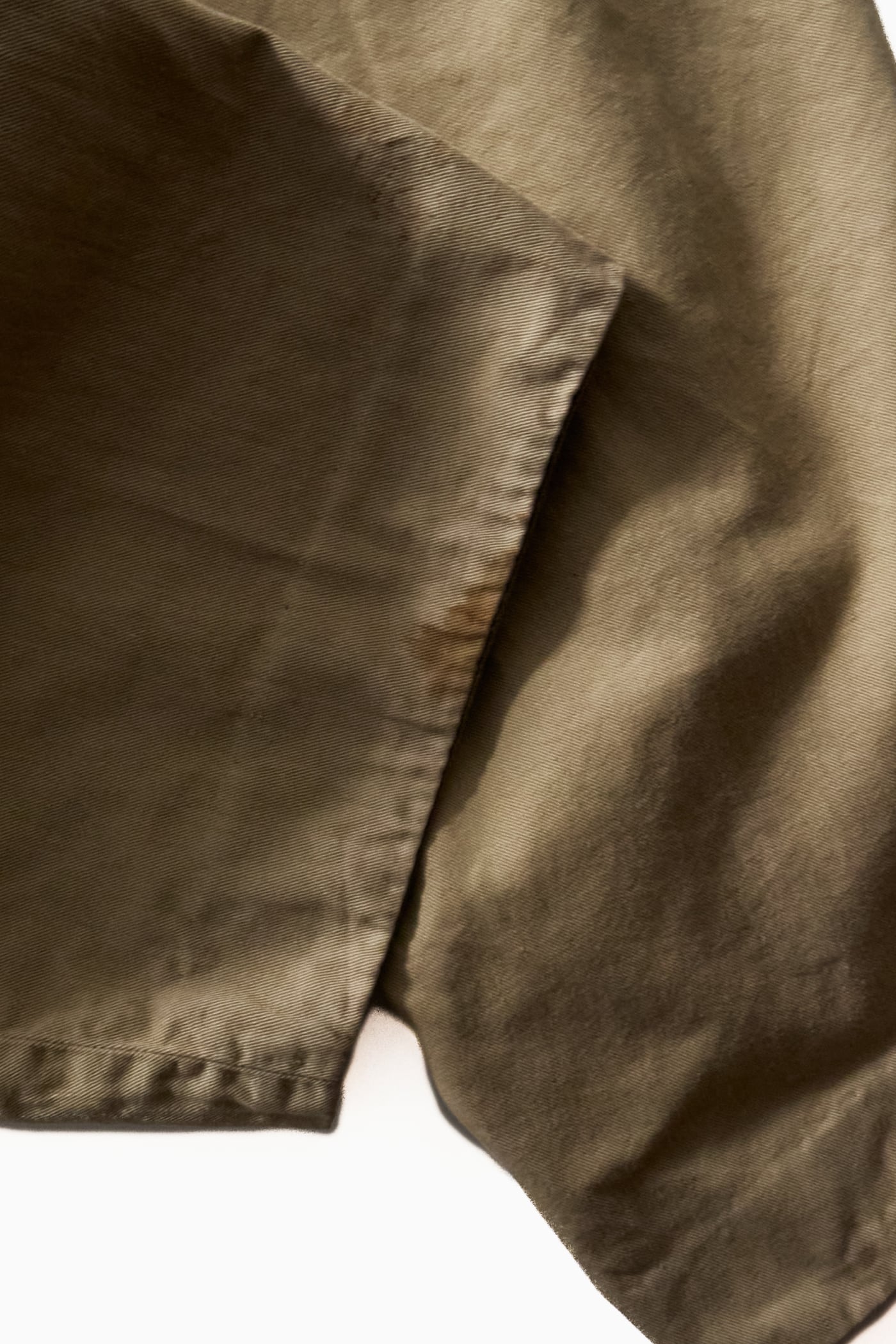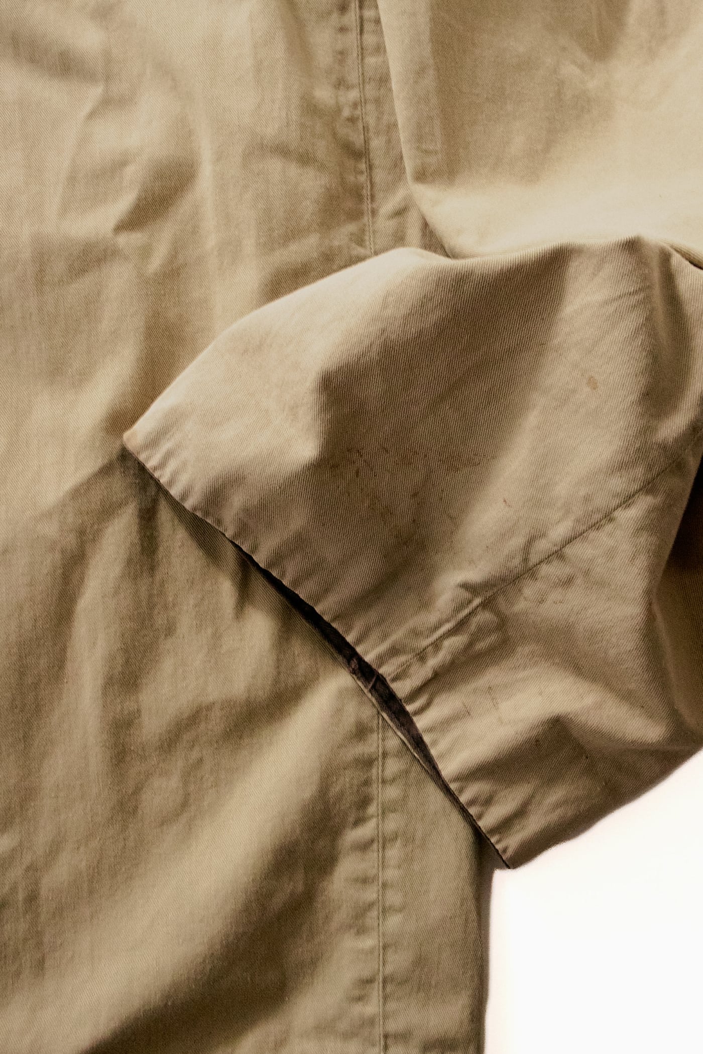 生地は程よいハリとしなやかさを持つコットンツイル地。長年穿き込まれることで全体に柔らかな風合いが生まれ、肌にスッと馴染む心地よい生地感へと育っています。
